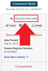 To find the docket number, access the comment page on Regulations.gov and the ID number will be listed somewhere on the right hand side of the screen. See below for an example.